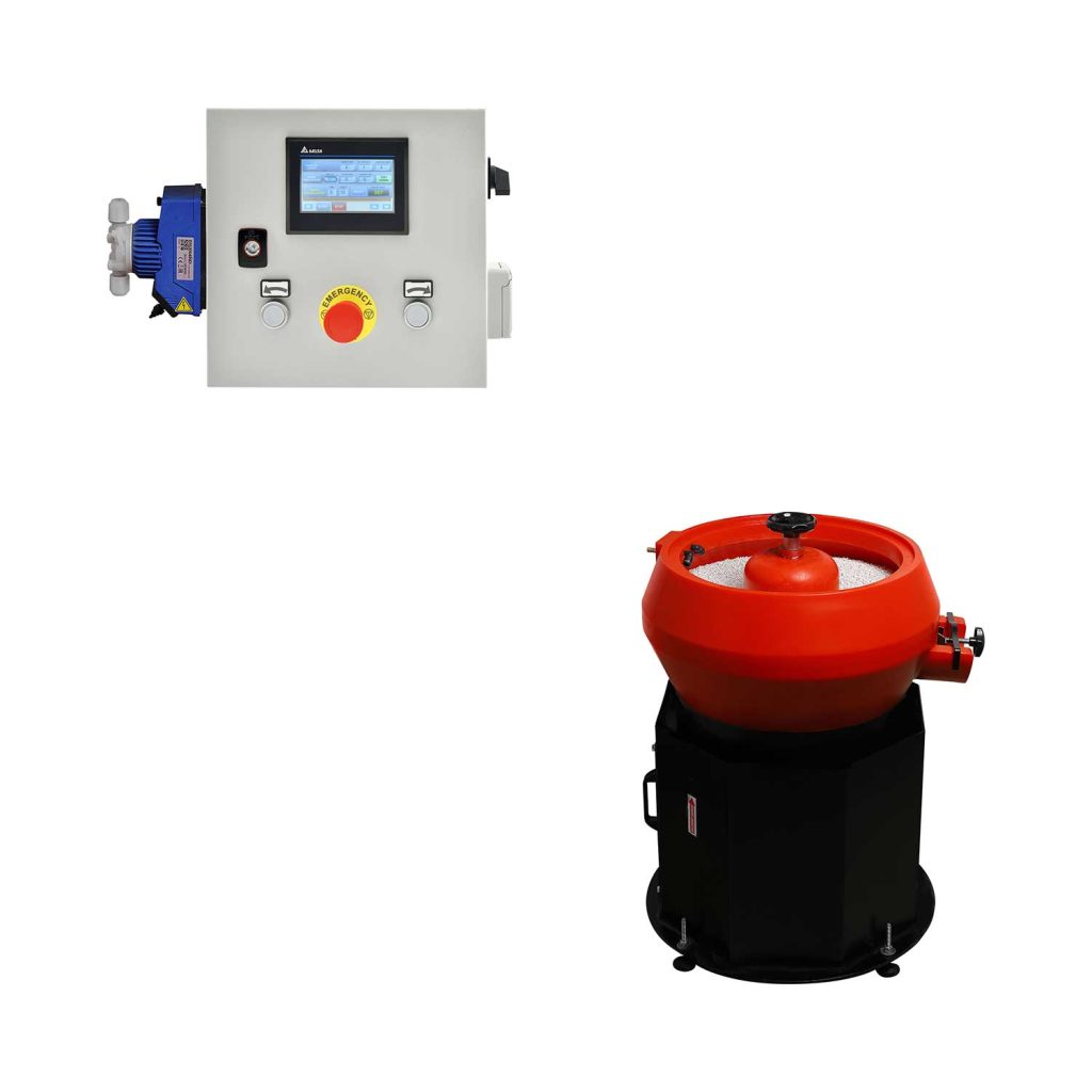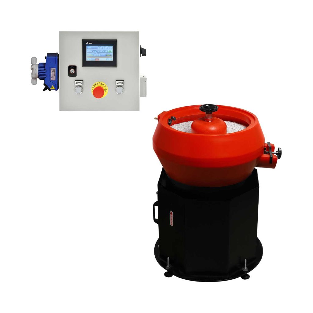 Circular vibrator with capacity 8LT - 15LT - 30LT - 60LT - 120LT; electric control panel included. Touch screen control panel with PLC. (All models 3000 RPM).